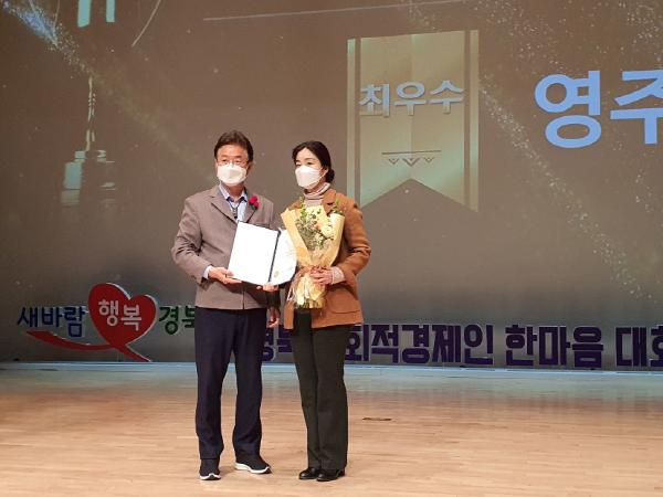 영주시는 지난 21일 경북도청 동락관에서 경상북도 주관으로 열린 사회적경제 한마음대회에서 ‘코로나19’ 극복 희망일자리사업 최우수상을 수상했다.