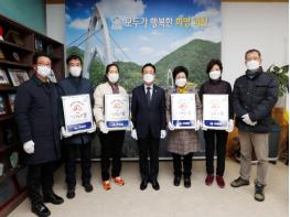 충북 괴산군이 지난 21일 친환경 쌀 사용 음식점을 지정해 현판을 수여했다