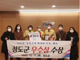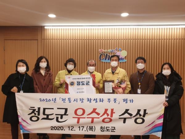 청도군은 청도시장 아케이드보수와 증발냉방장치 추가 설치 및 국비 2,970백만원 주차환경개선사업 공모선정, 100대과제사업인 청도시장 어울림장터 운영, 다수의 장보기행사 등 코로나19로 인해 침체되어 있는 시장에 활기를 불어넣기 위해 다각적으로 노력하고 있다는 점에 높은 점수를 얻어 우수상을 수상하게 되었다.