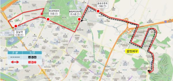 시는 감일지구 입주가 계속됨에 따라 노선 연장과 증차를 위해 서울시와 지속적으로 논의했고 잠실역 연장 및 10대 증차 협의를 이끌어냈다.