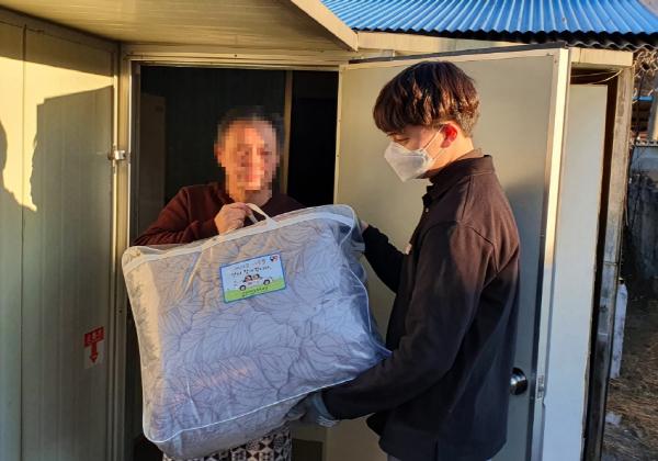 영동군 영동읍 맞춤형복지팀은 22일 지역내 저소득 통합사례관리 20가구를 찾아 겨울이불을 지원했다.