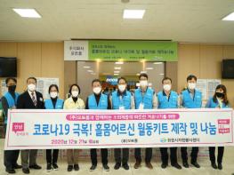월동 키트에는 마스크, 손소독제 등 생활필수품 8종으로 구성돼 있다. 월동 키트 400상자는 코로나19 및 동절기를 맞아 어려움을 겪고 있는 홀몸어르신 400세대에 전달될 예정이다.
