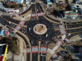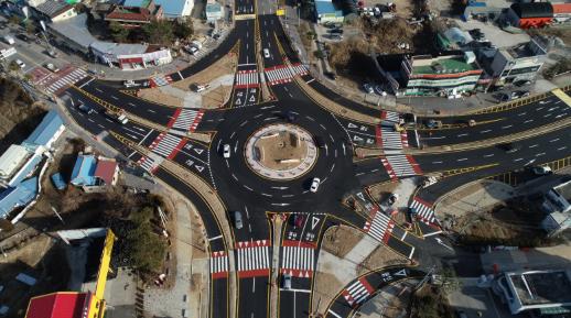 부여경찰서 앞 신호교차로를 개선하고자 도입된 회전교차로(Round about)는 기존 교차로와는 달리 차량이 교차로 중앙에 설치된 원형 교통섬을 저속으로 우회하는 방식으로, 교통신호 없이 새로 진입하는 차량보다 이미 회전하는 차량에 통행 우선권을 주어 운영되는 교차로 시설이며, 기존 교차로 보다 교통사고 위험이 줄고 교통 흐름이 더 원활하다.