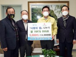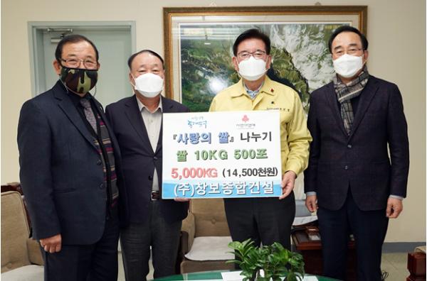 이날 오후 3시 구청장실에서 유덕열 동대문구청장, 맹진호 ㈜창보종합건설 대표 및 관계자 2명이 참석한 가운데 쌀 5,000kg(환가액 1,450만 원) 전달식이 진행됐다.