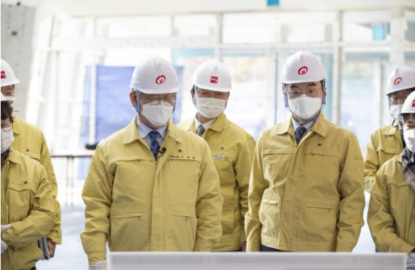 이재명 지사는 22일 안산시 단원구 대부북동에 위치한 해양안전체험관 건립현장을 방문해 추진현황을 듣고 시설을 점검했다. 이 자리에는 김남국 국회의원과 원미정 도의원 등이 함께했다.