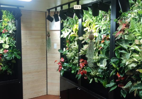 또한, 식물의 생육상태에 따라 자동으로 물을 공급하는 자동화 관수시스템과 조명제어가 가능한 생장조명 시스템을 장착하였으며, 사물인터넷 기술을 활용해 조도와 급수, 바람, 공기정화 기능을 제어할 수 있어 이용자의 휴식공간, 티타임공간, 자연친화 회의실 및 북카페 등으로 활용할 수 있다.