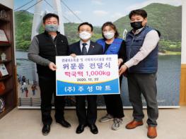 주성마트는 지난 2014년부터 매년 여름에는 삼계닭, 겨울에는 떡국 떡을 후원하는 등 어려운 이웃을 위한 나눔 활동을 펼치며 지역사회의 귀감이 되고 있다.