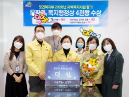 3개 복지사업 평가 ‘찾아가는 복지서비스 제공‘ 부문 결과는 ▲ 보건복지부 지역복지사업평가 「대상」 ▲ 행정안전부 주민자치형 공공서비스 구축사업 「우수」 ▲ 서울특별시 찾아가는 동주민센터 공감정책 「최우수」이다.