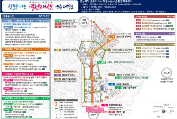 주요 사업내용은 지역산업 거점 조성, 문화친화형 거리조성, 도심관광 지원시설 구축, 살맛나는 거주공동체 지원사업 등 마중물 사업과 함께 상생상가존 구축사업, 대학로 건축경관 개선사업, 남부육거리 회전교차로 개선사업, 주거문화 복지지원사업 등 영주시 자체 사업을 함께 추진하게 된다.