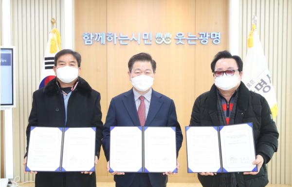 광명시는 22일 시장실에서 철산주공4단지주택재건축정비사업조합, 광명제16R구역주택재개발정비사업조합과 ‘국공립어린이집 무상임대 협약’을 체결했다.
