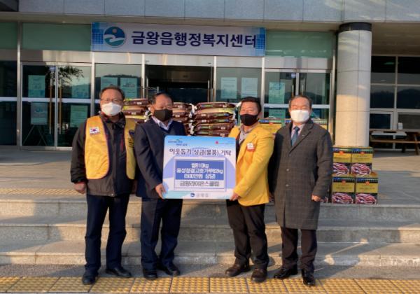 같은 날, 금왕라이온스클럽에서도 지역 내 어려운 이웃을 위해 사용해달라며 쌀 810kg(10kg 81포)와 음성청결고춧가루 62kg(1kg 62팩) 등 총 500만원 상당의 물품을 기탁했다.