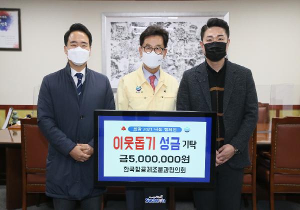 한국항공제조분과협의회(회장 황태부)에서는 지난 22일, 사천시청을 방문해 어려운 이웃을 위해 써달라며 성금 500만 원을 전달했다.