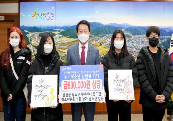 이에 문준희 합천군수는 “청소년들이 힘들게 얻은 수익금을 어려운 청소년을 위해 사용하겠다는 마음이 너무 기특하고 아름답다”며 “주변을 돌아보고 배려하는 지역인재로 성장하기를 바란다”고 전했다.