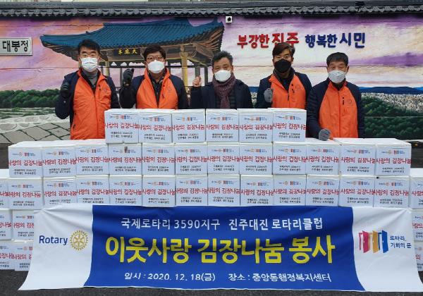 중앙동 봉사단체협의회에서는 매년 시행해 오던 김장 나눔 행사를 대신해 코로나19 확산 예방을 위해 완제품 400박스를 구매해 비대면 방식으로 각 가정으로 전달하였고, 국제로타리 3590지구 대진로타리에서도 사랑과 온기를 담은 김장 60박스를 전달하였다.