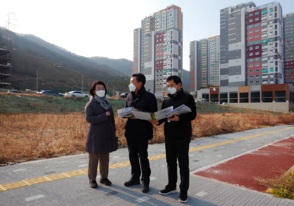 정혜란 창원시 제2부시장은 22일 마산합포구 창원가포공공주택지구를 방문해 현장을 둘러보고 전체적인 공공주택건설사업 진행상황을 점검했다. 공공주택지구 내 최근 입주한 가포LH1단지 공공임대주택 현장도 둘러봤다.