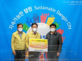 지난 22일 당진시청 목민홀에서는 ㈜에스비씨원(대표이사 윤영복)의 마스크 8만 장 전달식이 있었다.