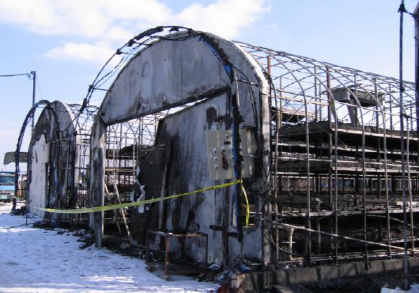 특히 단열을 위해 많은 버섯 재배사에서 사용하고 있는 조립식 샌드위치 판넬의 경우, 철판 사이에 스티로폼이 단열재로 들어가 있어 불이 붙게 되면 화재 진압이 어려우므로 주의가 필요하다.