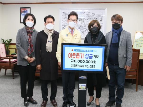 대한전문건설협회 사천시협의회(회장 김영련)에서는 지난 21일, 사천시청을 방문해 어려운 이웃을 위해 써달라며 성금 600만 원을 전달했다.