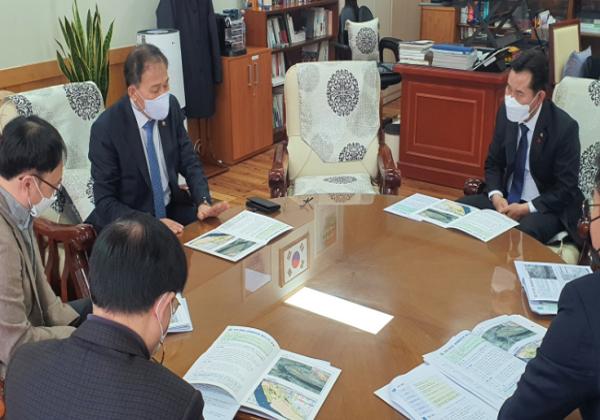 박정현 부여군수가 부여군 산림분야 최대 현안사업인 ‘국립 치유의 숲’과 ‘백마강 국가정원’조성 건의를 위해 지난 22일 산림청을 방문하여 국비 지원을 요청했다.