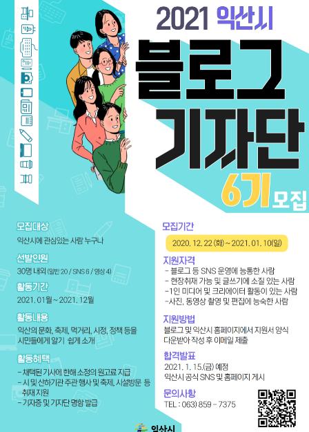 익산시가 다양한 콘텐츠를 통해 시정에 대한 관심과 이해를 높이고 공감을 이끌어 낼 제6기 블로그기자단을 모집한다고 밝혔다.
