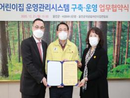 울진군은 지난 21일 군수실에서 울진군국공립어린이집연합회 및 하나은행과「어린이집 운영관리시스템 구축?운영 협약식」을 가졌다.