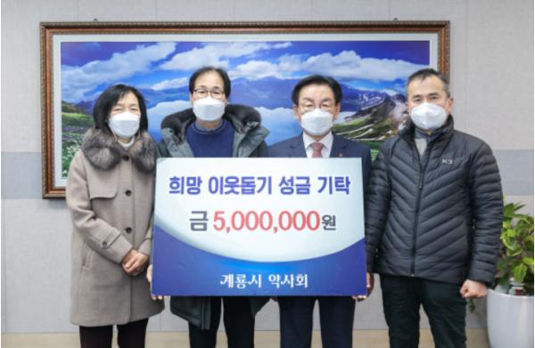 계룡시에서 영업중인 14개 약국 약사로 구성된 계룡시 약사회는 어려운 이웃들 돕기 위해 힘을 모아 마련한 성금 500만원을 계룡시에 전달했다.