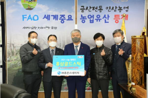 금산군의 ㈜휴온스네이쳐, 금산군의용소방대연합회, 금산군인삼연구회 등 기업·단체들은 지난 22일 관내 어려운 이웃을 위한 나눔을 실천하기 위해 총 1700만 원의 물품과 성금을 기탁했다.