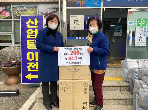 이번 후원금 및 후원물품 릴레이 행렬은 양서면새마을회 회원들이 지역 손길에 동참하자는 자발적인 참여로 이루어졌으며, 후원금 200만원과 열악한 환경에서 지내는 저소득층에게 겨울철 온기를 더할 수 있는 이불 40세트와 코로나19로 인해 늘어나는 쓰레기와 불철주야 사투를 벌이고 있는 환경미화원에게 마스크 1,000장을 기부하였다.