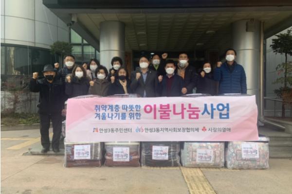 안성시 안성3동지역사회보장협의체는 22일 저소득 소외계층의 따뜻한 겨울나기를 위한 이불 나눔 행사를 가졌다.