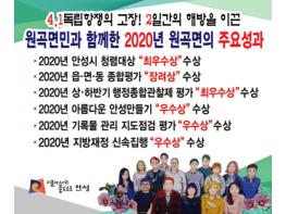 안성시 원곡면은 15개 읍·면·동을 대상으로 실시한 2020년 안성시 읍면동 종합평가에서 장려상 수상 등 안성시 각종 시책평가에서 괄목할 만한 성과를 달성했다고 23일 밝혔다.