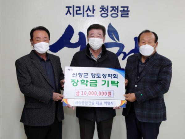 산청군은 삼삼종합건설에서 23일 산청군을 찾아 고향의 우수 인재 육성에 써 달라며 향토장학금 1000만원을 기탁했다고 밝혔다.