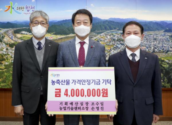 합천군은 조수일 기획예산실장과 손영진 농업기술센터소장이 공직생활을 마무리하며 지난 23일 농축산물가격안정기금 200만원씩, 총 4백만원을 기탁했다고 밝혔다.