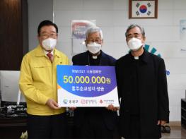 연말을 맞아 어려운 이웃을 위한 기부가 이어지는 가운데 홍주성지성당에서 5,000만 원의 성금을 홍성군 취약계층을 위해 기부했다.