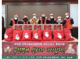 이번 크리스마스 특화사업은 지난 2019년 연말 ‘무안, 산타가 갑니다’선물꾸러미 지원사업과 연계해 두 번째로 추진하는 사업으로, 코로나19로 자칫 소외되기 쉬운 이웃에게 협의체 위원과 복지이장들이 비대면 방식으로 생필품과 학용품 선물꾸러미를 전달했다.
