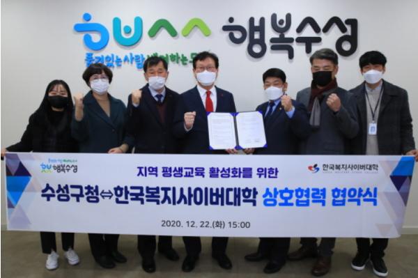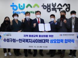 대구 수성구는 지난 22일 한국복지사이버대학교와 지역 평생교육 활성화를 위해 관?학 상호 협력체제 구축 업무협약(MOU)을 체결했다.