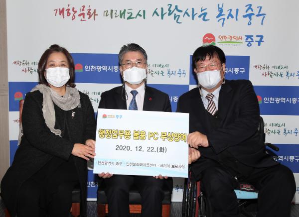 인천 중구는 정보소외계층(장애인·아동·수급자 등)을 위해 컴퓨터(PC) 양여식을 지난 22일 개최했다.
