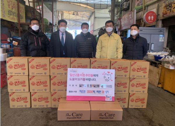 일산시장 상인회는 지난 12월 21일 어려운 주민들에게 도움이 되길 바란다며, 일산2동 행정복지센터(동장 김진구)에 라면 20박스와 마스크 2000매를 기증했다.