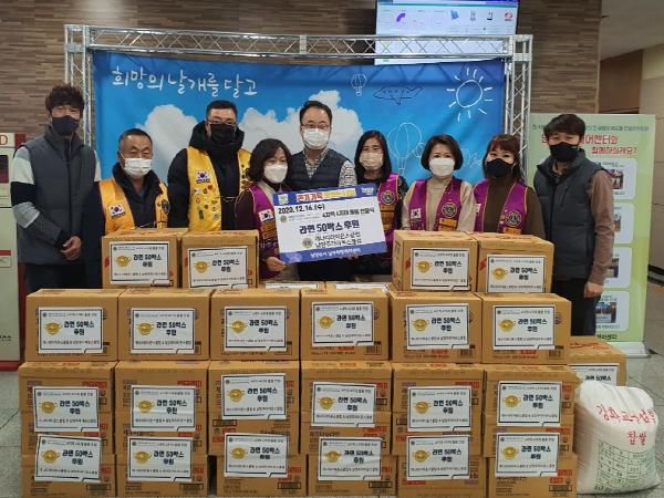 국제라이온스협회 354-H지구 개나리라이온스클럽(회장 오혜령)에서는 지난 22일, 취약계층을 위한 라면 50박스를 남부희망케어센터에 기탁했다.
