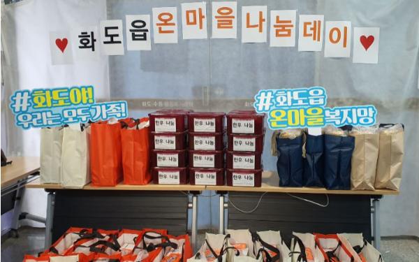 화도읍은 이번‘온 마을 나눔데이’를 통해 화도읍‘온 마을 나눔쿠폰’ 사업에 참여하고 있는 나눔가게와 지역단체에서 십시일반 기부한 물품으로 나눔 꾸러미를 구성하여 관내 취약계층 70가구에 지원했다.