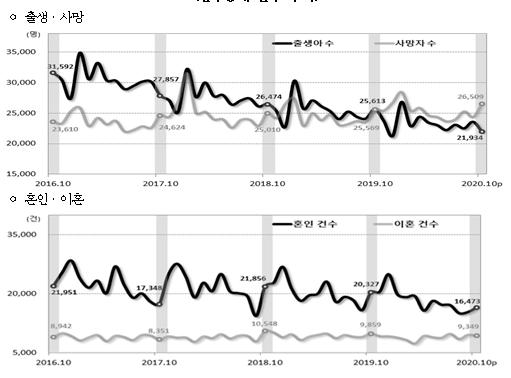 2020년 10월 인구동향(출생, 사망, 혼인, 이혼)