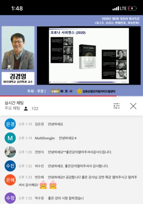 김포시는 18일 2020년 제2회 일자리 명사특강을 김포시청유튜브로 생중계 진행했다.
