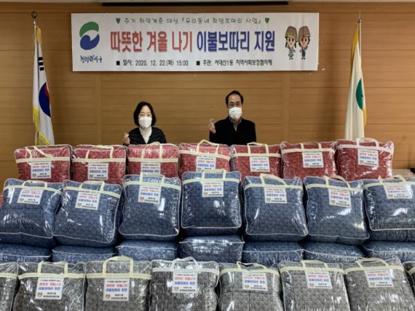 부산광역시 서구 서대신1동 지역사회보장협의체는 지난 22일, 지역 내 주거 취약계층 48세대에 겨울이불을 지원하였다.