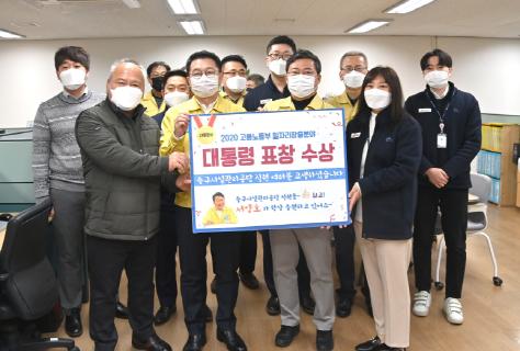 중구시설관리공단은 ▲ '18년 ~ '20년 일자리창출 ▲ 노사상생 프로그램 운영 ▲ 정규직화에 따른 차별없는 고용환경 구축 등의 공적을 높이 평가 받아 공공부문 정규직 전환 영역에서 대통령 표창을 수상하는 영광을 안았다.
