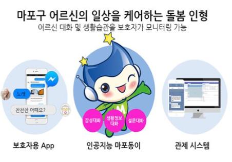 그 밖에 주요 기능은 ▲설문대화 등 치매예방 콘텐츠 ▲인공지능 기술(머신러닝, 딥러닝)을 이용한 개인별 맞춤형 서비스(약복용 시간, 기상 및 취침, 날씨 등) ▲활동감지 등 안전관리 모니터링을 통한 비상상황 응급 연계 ▲마포구 행정 및 복지소식 알림 등이다.