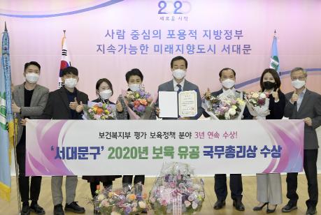 서대문구는 최근 정부 평가에서 2020년 보육사업 우수 기관으로 선정돼 국무총리상과 보건복지부장관상을 수상했다고 24일 밝혔다.
