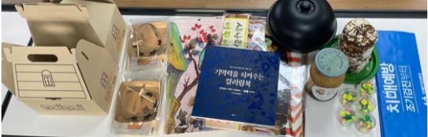 꾸러미는 치매안심센터 등록 환자 중 지속적으로 활용이 가능한 대상으로 진단군에 맞춰 제공하고 있다. 슬기로운 기억력 키트는 인지자극을 위한 퍼즐 2개, 컬러링북, 느타리 표고버섯 키우기 키트, 콩나물 키우기 키트, 색연필, 공깃돌 등이 담겨있다.