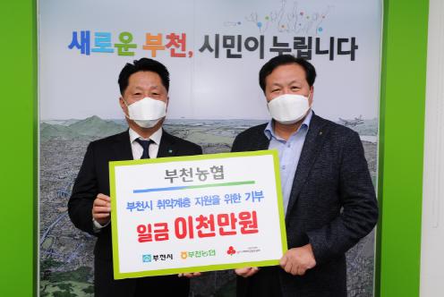 지난 23일 부천농협과 오정농협은 코로나19로 어려움을 겪고 있는 취약계층 지원을 위해 부천시에 각 2천만 원씩 총 4천만 원을 기탁했다.