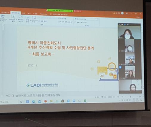 이날 보고회는 코로나19 확산으로 비대면 방식으로 전환해 아동친화도시 추진위원 등 15명이 온라인 화상회의에 참석한 가운데 평택시 아동친화도시 전략사업 4개년 계획에 대한 논의를 펼쳤고, 추가 보완 및 제안사항을 내놓았다.