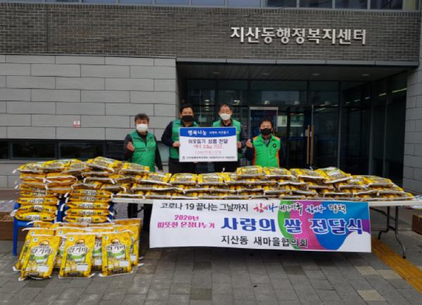 함재규 지산동장은 “우리 지산동이 따뜻한 지역 사회가 될 수 있도록 꾸준히 힘써주시는 지산동 새마을지도자님들과 자율방재단원님들께 감사드린다”며, “힘든 시기 철저한 거리두기 및 방역을 지켜 관내 어려운 이웃들에게 잘 전달하도록 하겠다”고 밝혔다.