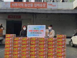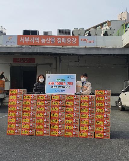이날 기탁된 라면은 코로나19 확산세 지속에 따라 방역수칙 준수 및 코로나19 예방을 위해 관내 독거노인, 장애인 등 저소득 100가구에 비대면 방식으로 전달하였다.